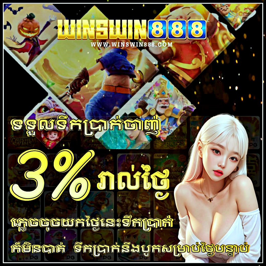 1.ទឹកប្រាក់ចាញ់គិតអោយ 3% អាចចុចទទួលបានរៀងរាល់ម៉ោង01:00AM